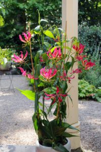 - The Gloriosa (or flame lily) is a great choice for those who want a bit of exotic flair. The fiery flowers appear to float above the foliage and add a playful touch to sunny and shady spots.