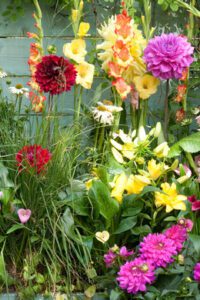 2. Gladioli – Their long, elegant flowers add height to the garden and are perfect for colourful borders or as cut flowers in a summer bouquet.
