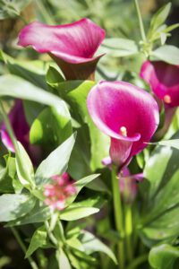 4. Zantedeschia (Calla lily) – With their graceful fluted flowers, they bring elegance and a touch of luxury to pots and borders in the summer.
