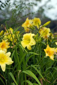 Yellow is a typical summer colour that exudes joy and optimism. Summer bulbs such as sun-drenched daylilies (Hemerocallis), yellow dahlias and bright yellow anemones are perfect choices.