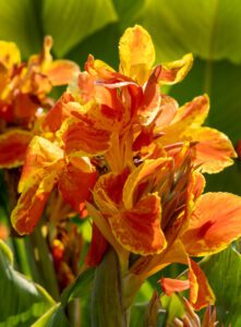 Orange represents energy and warmth. Bulbs such as orange Canna and lilies make for a spectacular show in the garden. This fiery colour works really well in sunny borders and will also attract butterflies!